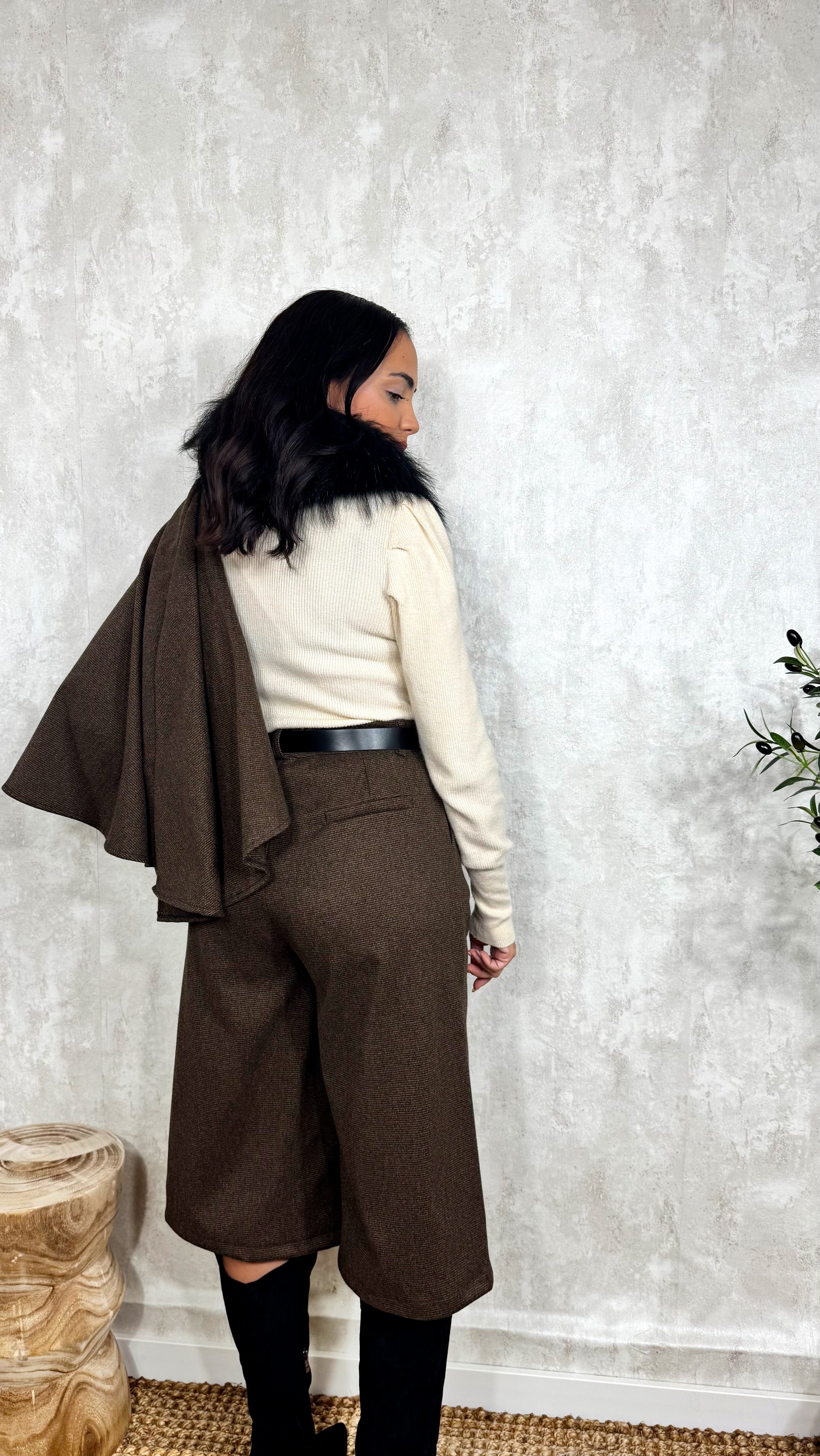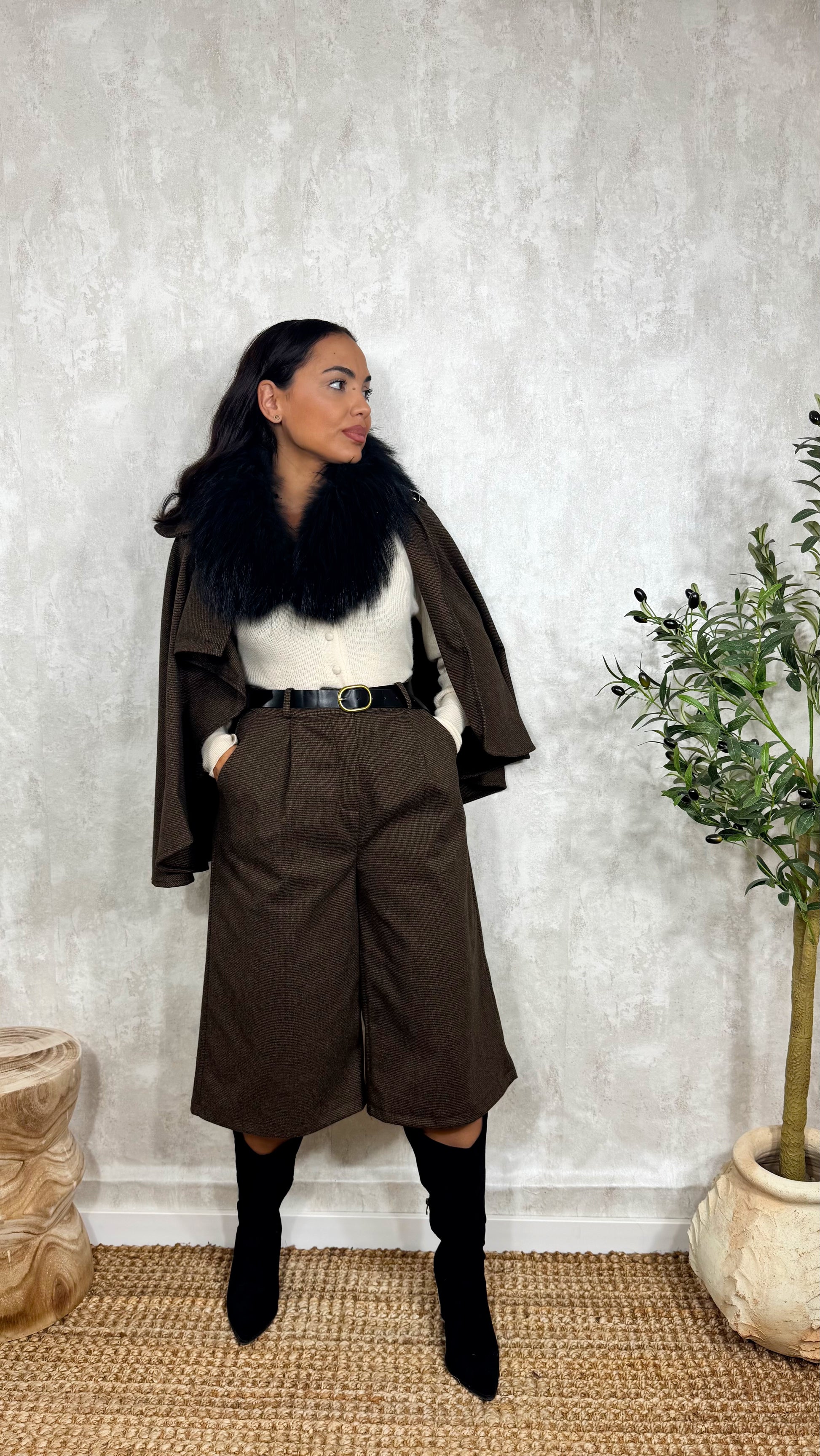 Bermuda en mini cuadros marrón y negro con bolsillos y talle alto.