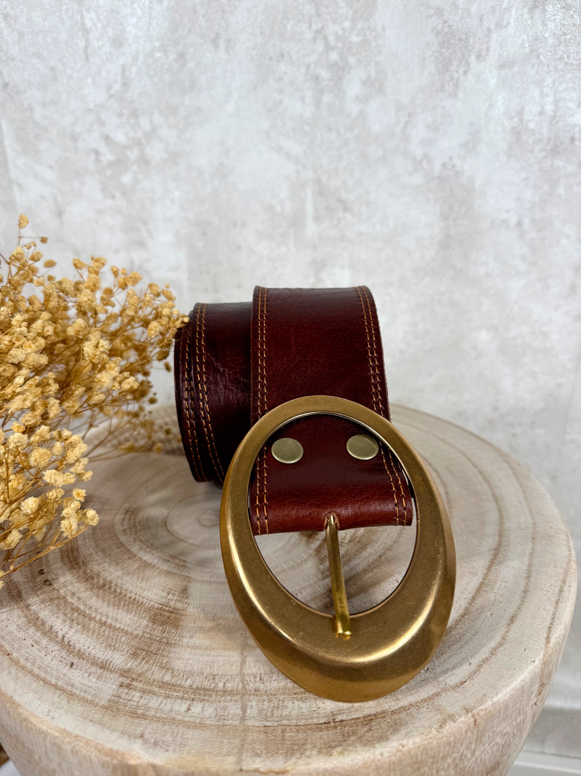 Cinturón de piel natural sin tratar en color marrón con 6cm de ancho