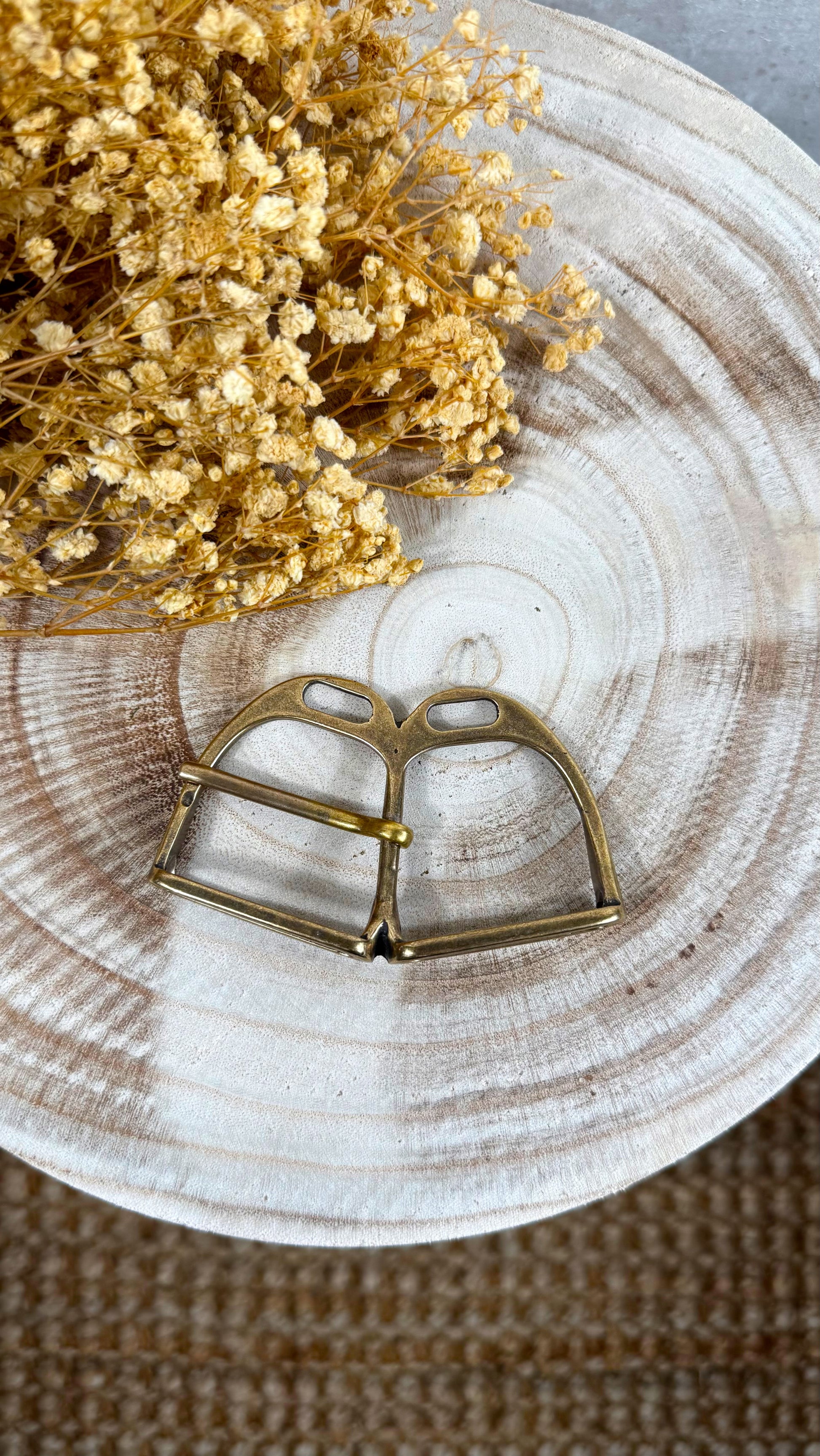 hebilla intercambiable para cinturón en color dorado, con forma doble de estribo ingles