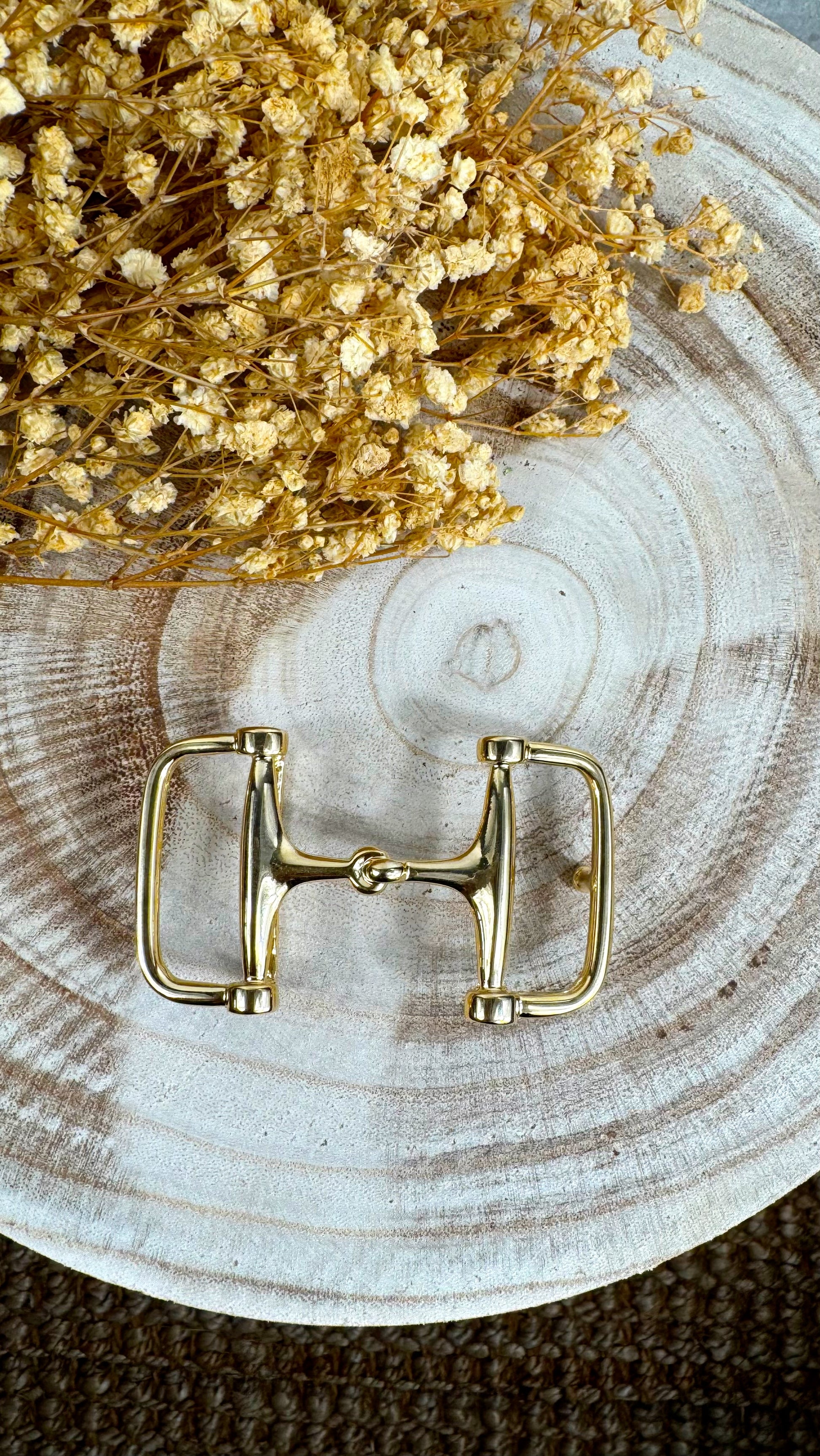 hebilla intercambiable para cinturón en color dorado, con forma de bocado ingles