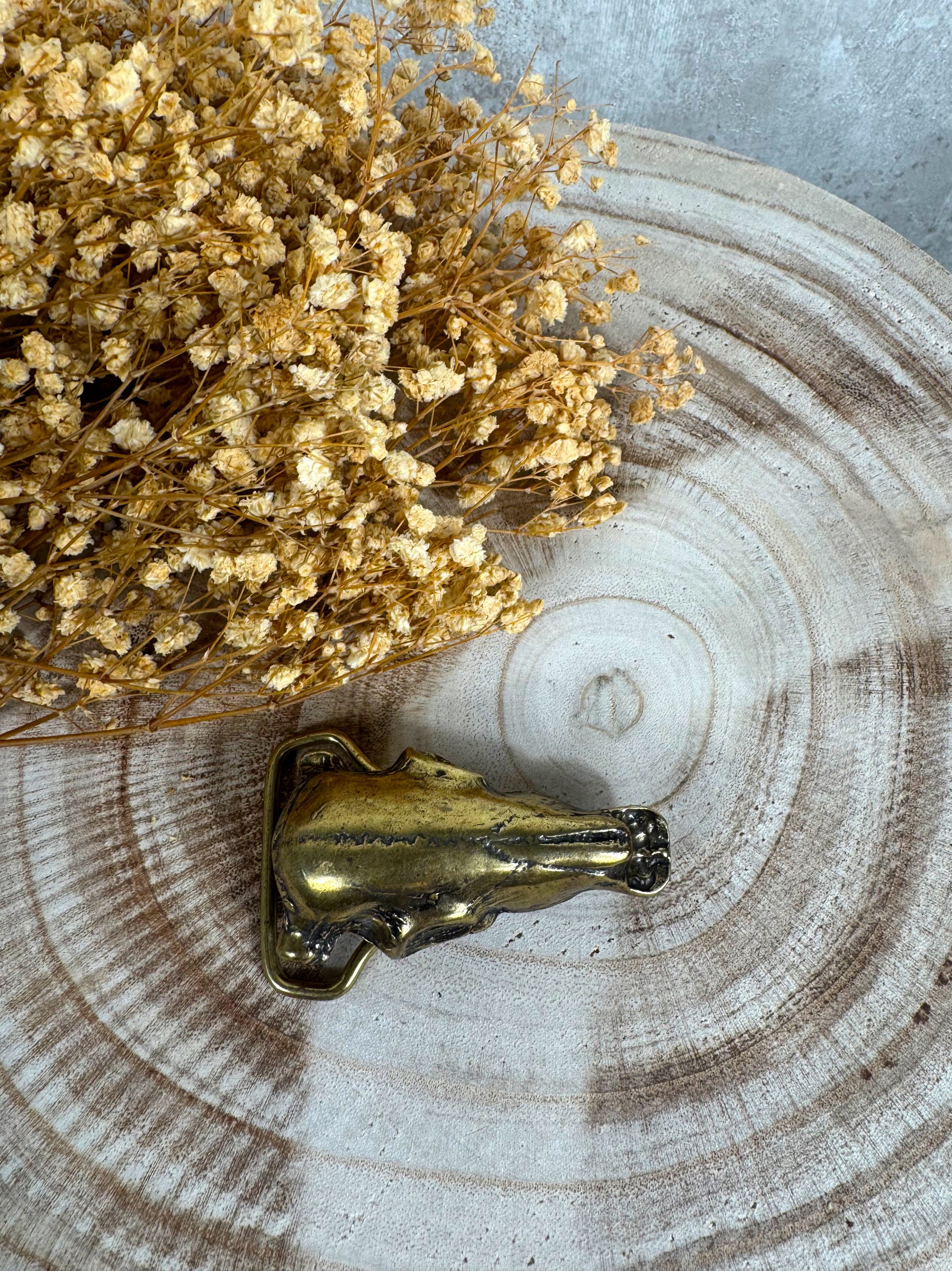 hebilla intercambiable para cinturón en color dorado, con forma de cráneo de vaca