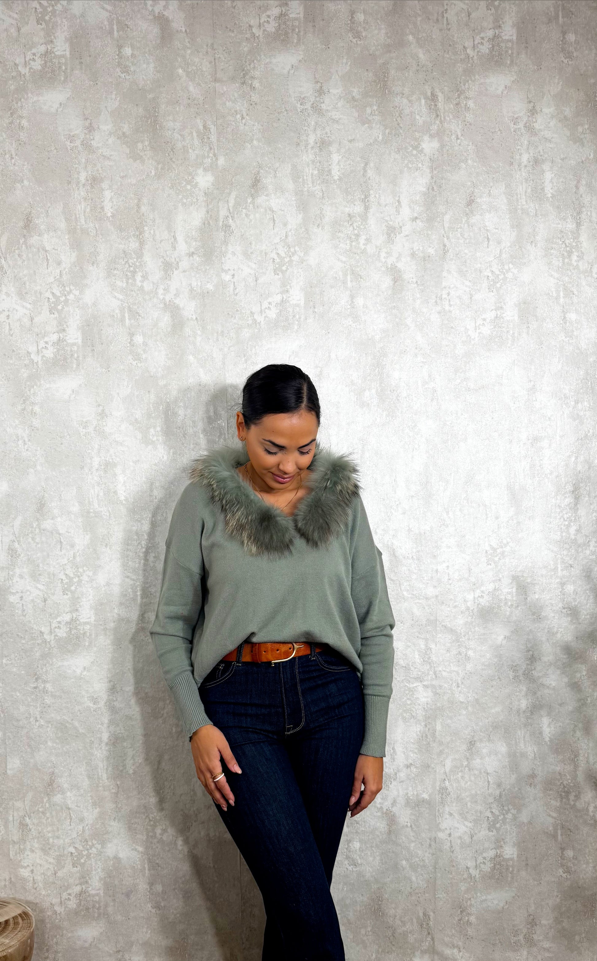 Jersey de punto, súper amplio con cuello natural desmontable.