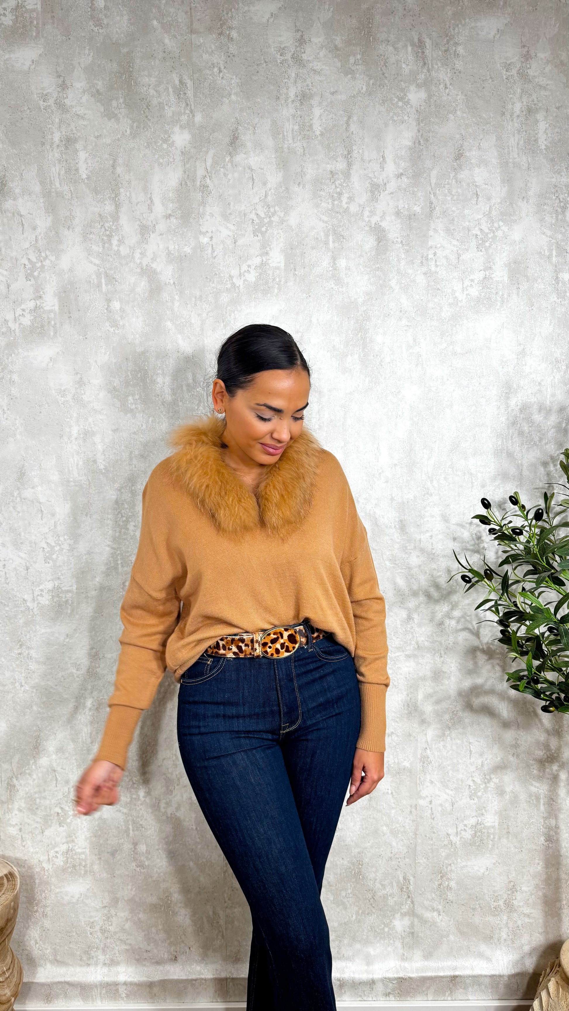 Jersey de punto, súper amplio con cuello natural desmontable.