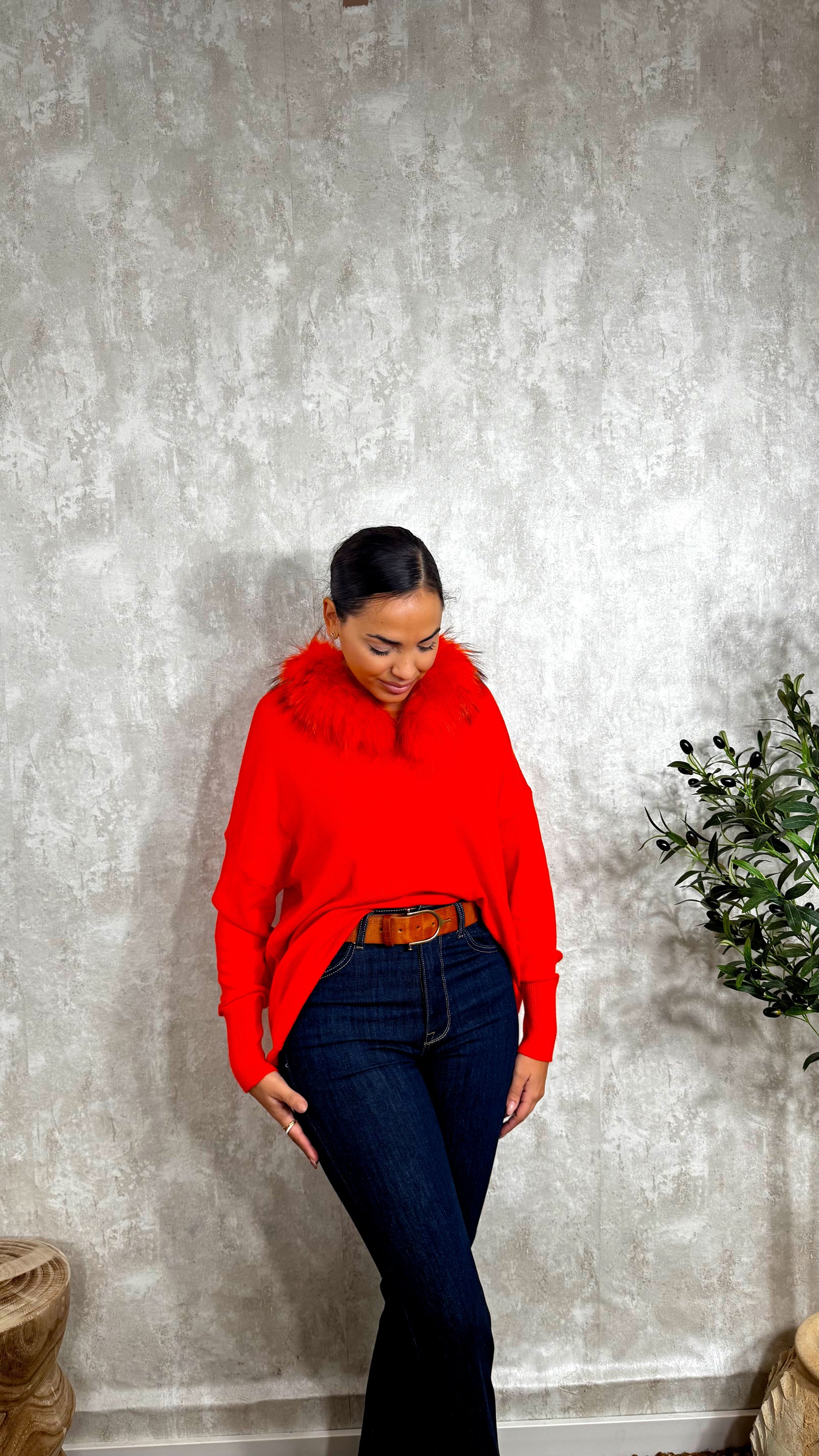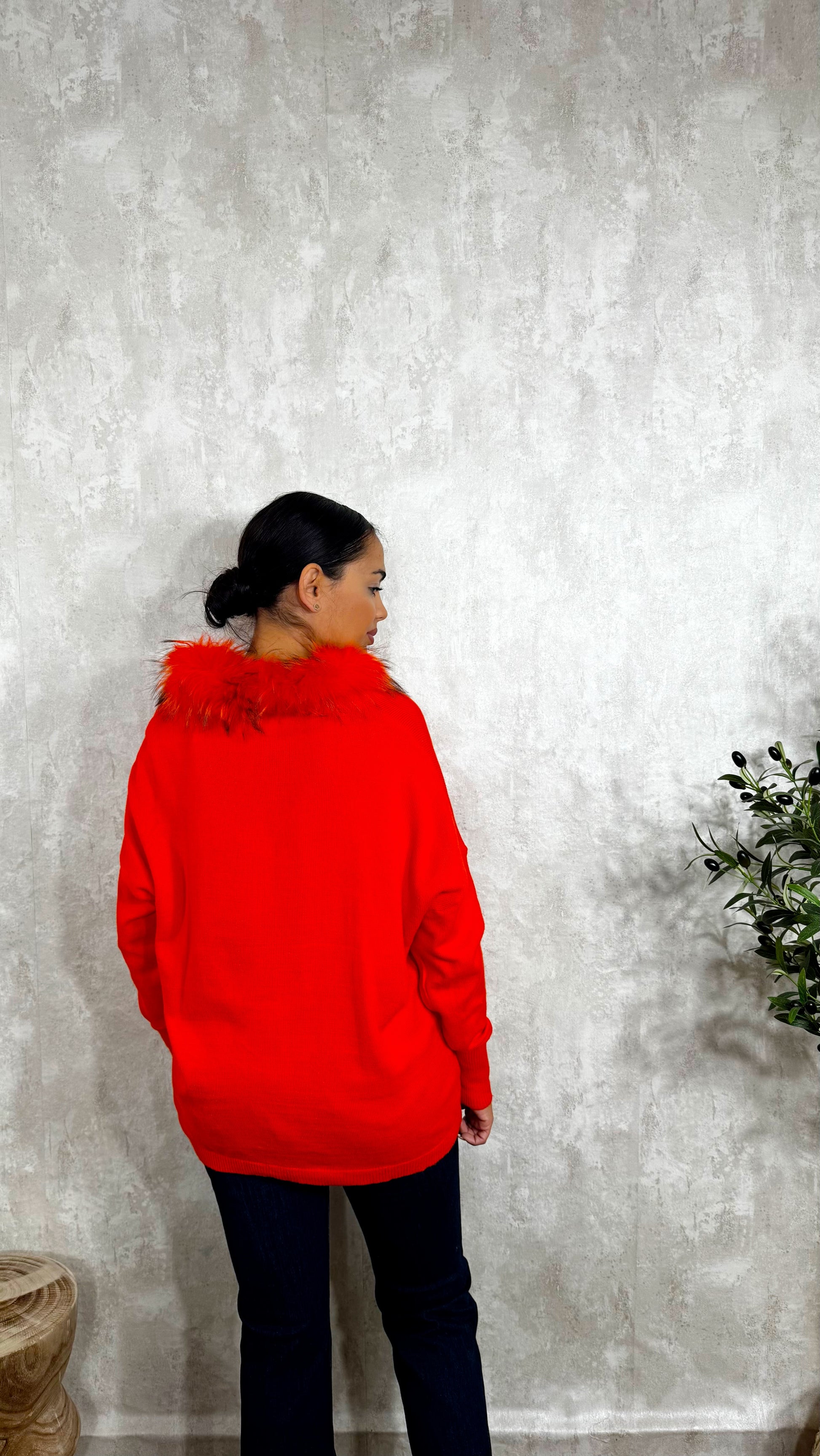 Jersey de punto, súper amplio con cuello natural desmontable.