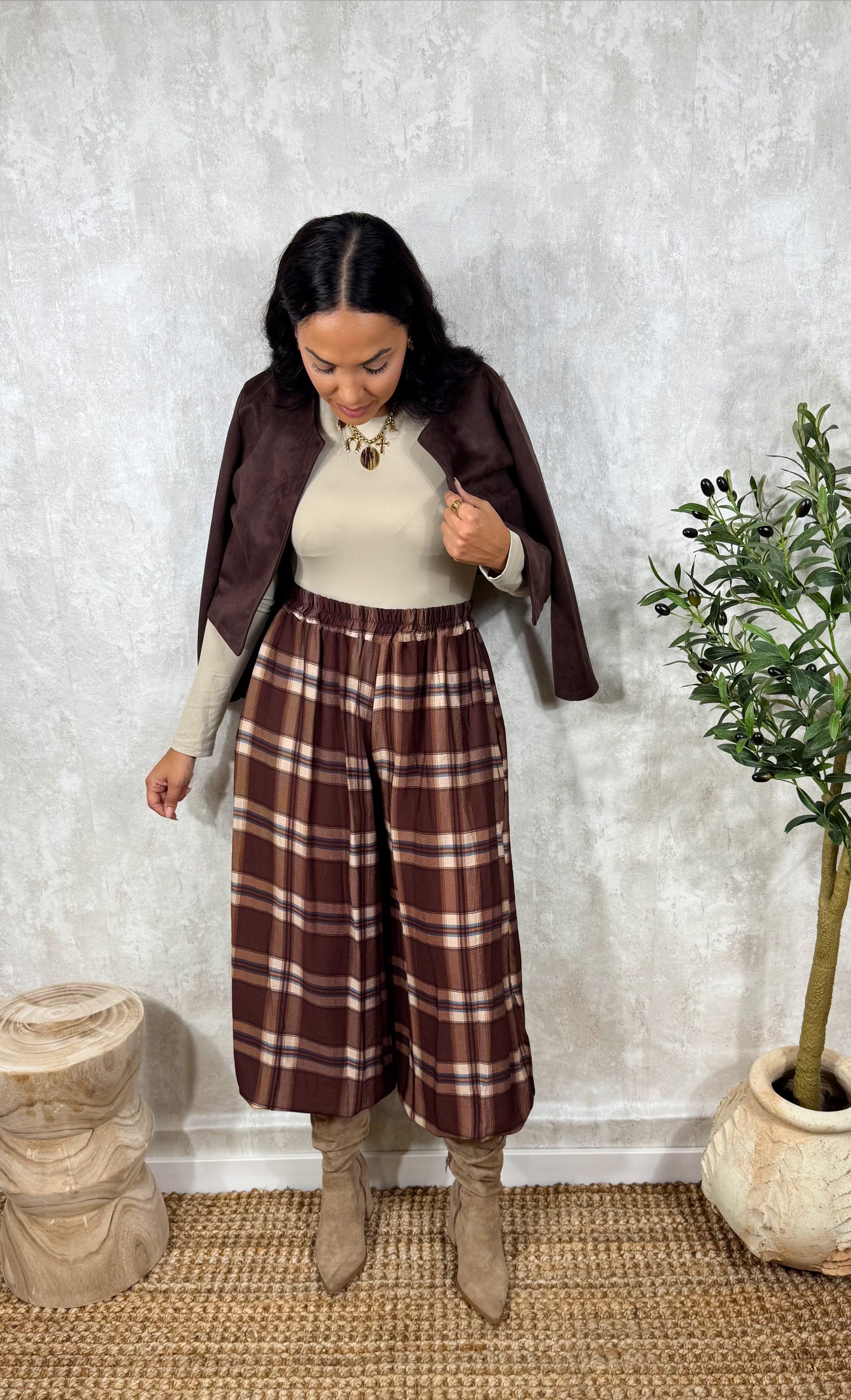 Pantalón bombacho de cuadros con elástico en la cintura y en los tobillos.