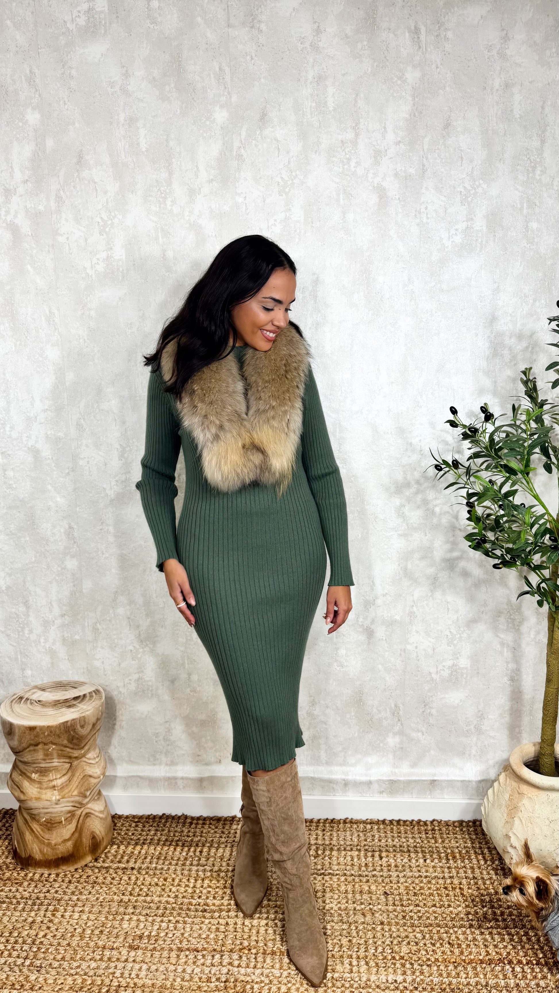 Vestido de punto canalé, manga larga con tacto súper suave.